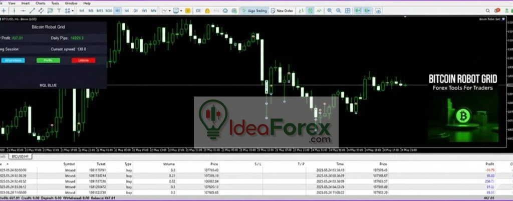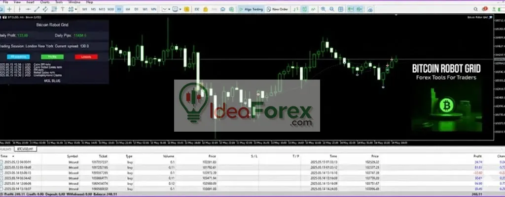 Bitcoin Robot Grid MT4 is an Expert Advisor fully automated trading system designed specifically for BTCUSD. It uses a structured grid strategy to take advantage of Bitcoin’s strong volatility, placing buy and sell orders at preset price levels. With smart trade management and built-in protection features, the EA handles trading 24/7 without the need for manual control, making it simple and efficient for all types of traders.