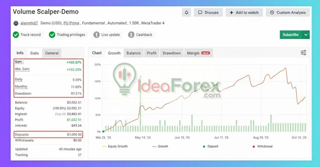 🔹Volume Scalper EA has verified 4 months of stable, safe profit on MyFxBook.